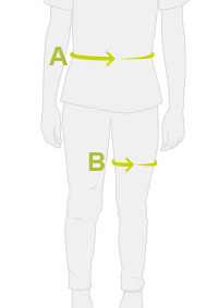 Grösse 2: Taillenumfang (A) 82-120cm / Oberschenkelumfang (B) 60-75cm
